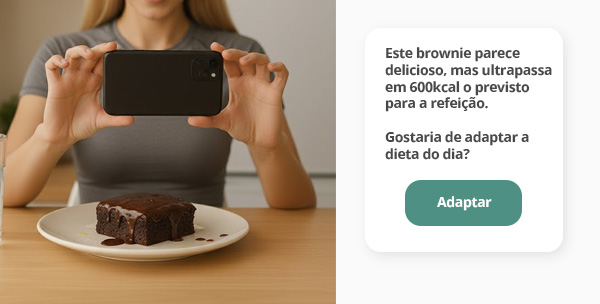 E se o prato estiver fora do plano, o app adapta sua dieta do dia para equilibrar o excesso, mantendo seu progresso sem culpa.